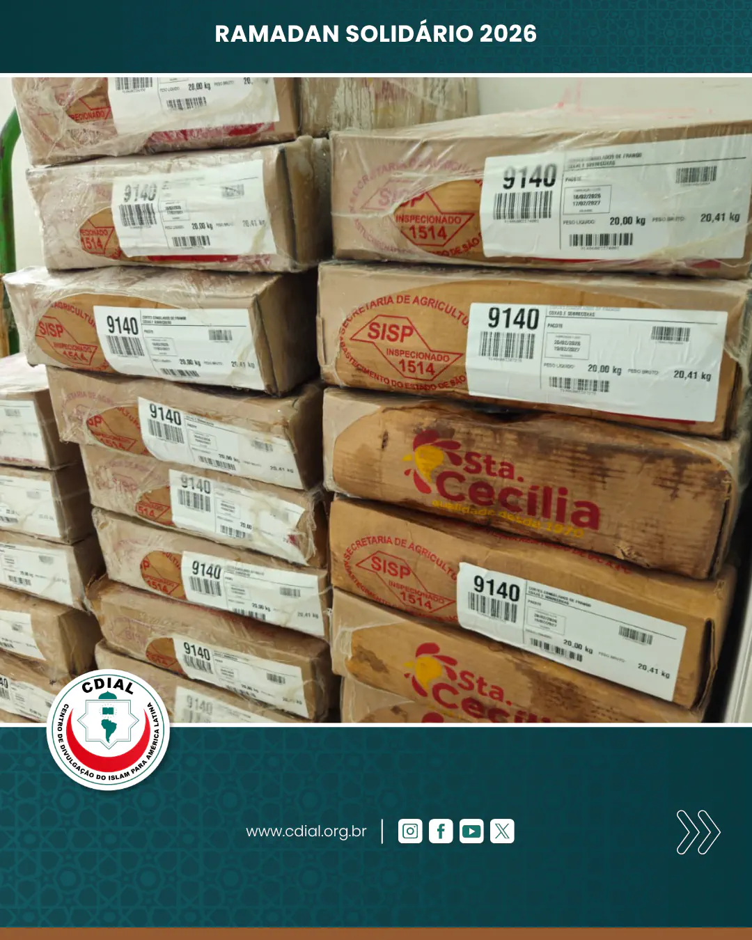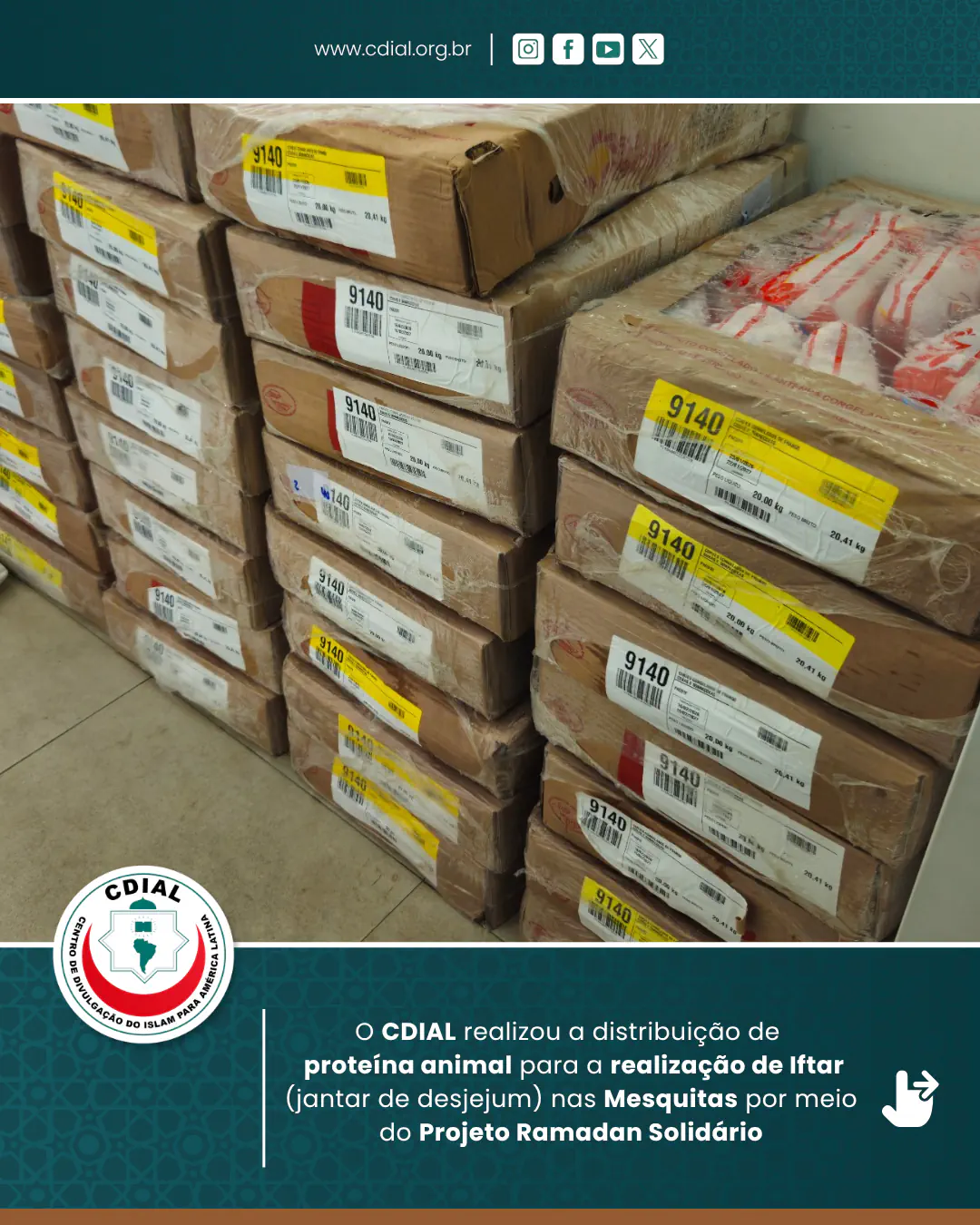 O CDIAL também distribuiu 2 toneladas de proteína animal, destinadas à realização do jantar de Iftar nas mesquitas, e ao atendimento de famílias muçulmanas.